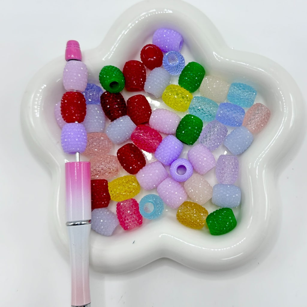 半透明マルチカラーバレルシリンダーシェイプアクリルビーズ、大きな穴付き、ランダムミックス、15×12MM