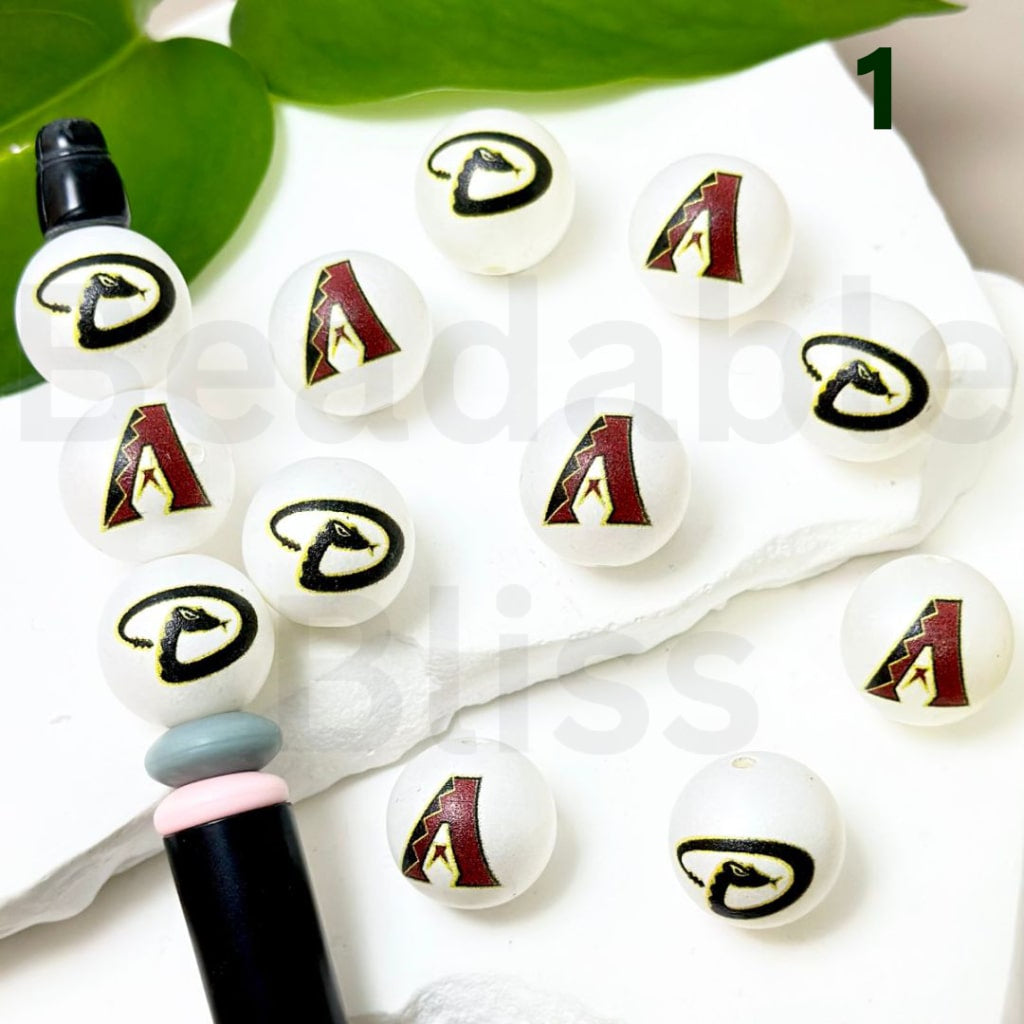USA アメリカ野球チーム アリゾナ ダイヤモンドバック スポーツ フロストマットホワイト ラウンドアクリルビーズ 16mm ランダムミックス