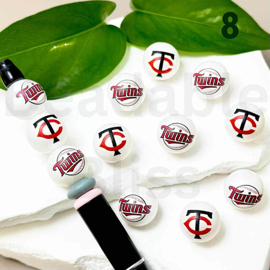 USA アメリカ野球チーム ミネソタ トゥイ スポーツ フロストマットホワイト ラウンドアクリルビーズ 16mm ランダムミックス