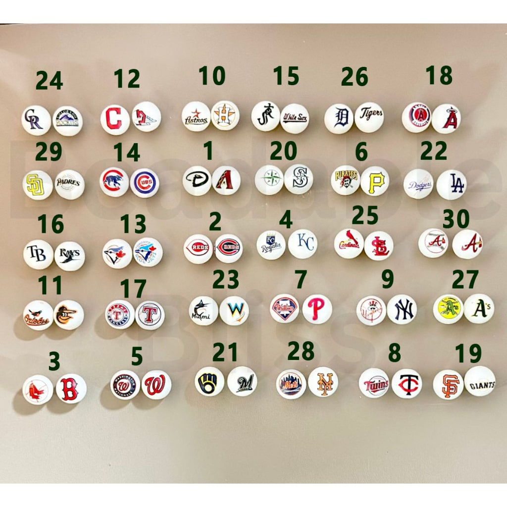 USA アメリカ野球チームスポーツ フロストマットホワイト ラウンドアクリルビーズ 16mm 全チームランダムミックス