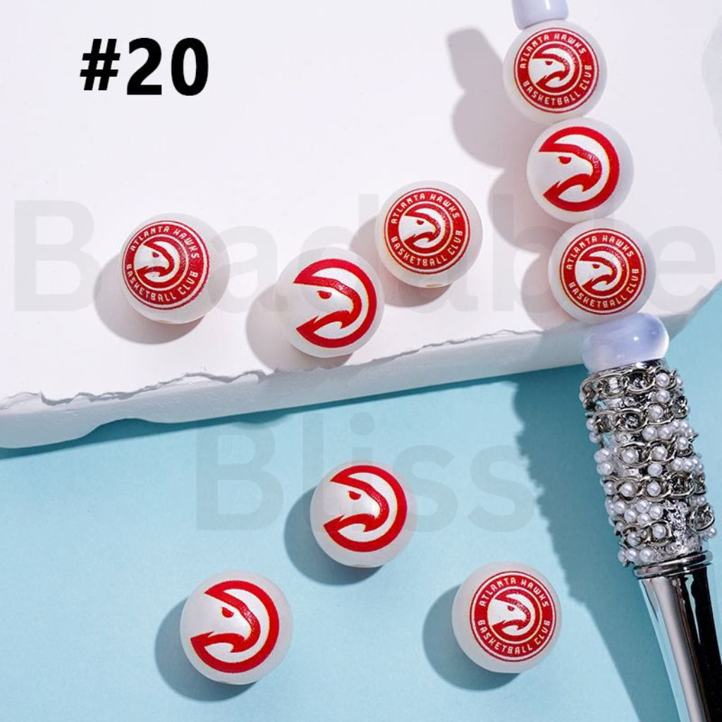 USA アメリカバスケットボールチーム アトランタホー NB スポーツ フロストマットホワイト ラウンドアクリルビーズ ランダムミックス 16mm
