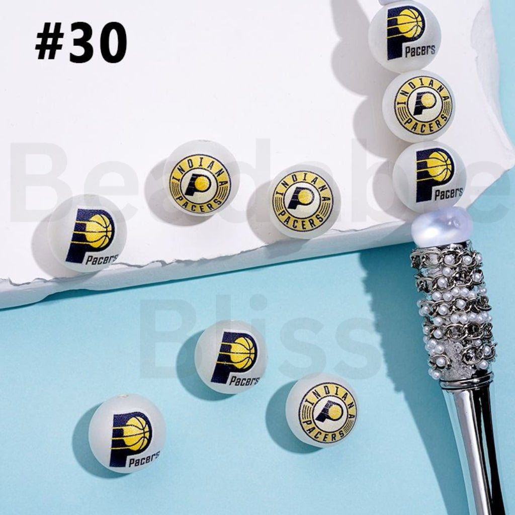 USA アメリカバスケットボールチーム インディアナペース NB スポーツ フロストマットホワイト ラウンドアクリルビーズ ランダムミックス 16MM