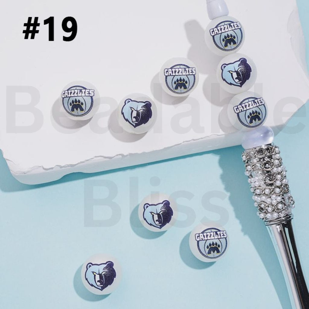 USA アメリカバスケットボールチーム メンフィスグリズリ NB スポーツ フロストマットホワイト ラウンドアクリルビーズ ランダムミックス 16mm