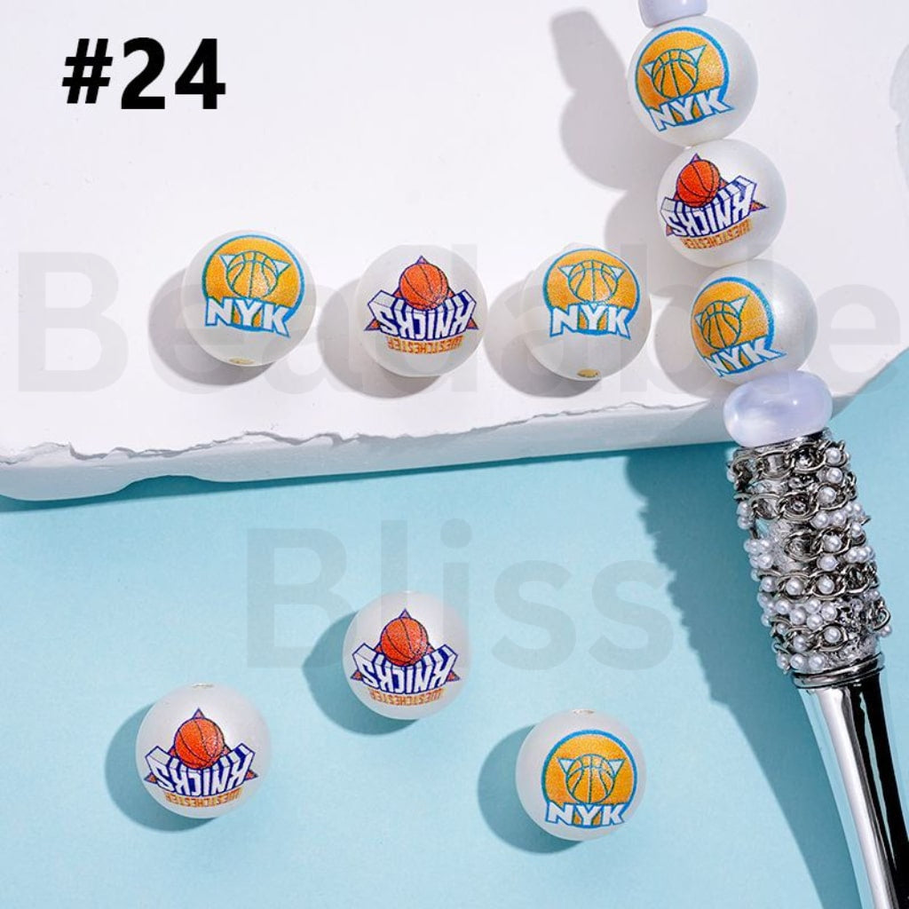 USA アメリカバスケットボールチーム ニューヨークニック NB スポーツ フロストマットホワイト ラウンドアクリルビーズ ランダムミックス 16mm