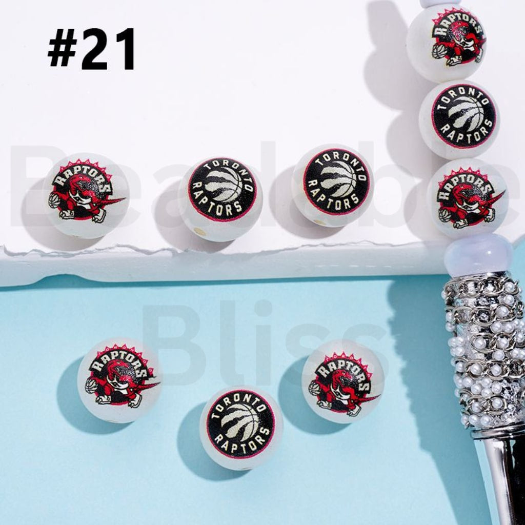 USA アメリカバスケットボールチーム トロント ラプト NB スポーツ フロストマットホワイト ラウンドアクリルビーズ ランダムミックス 16mm