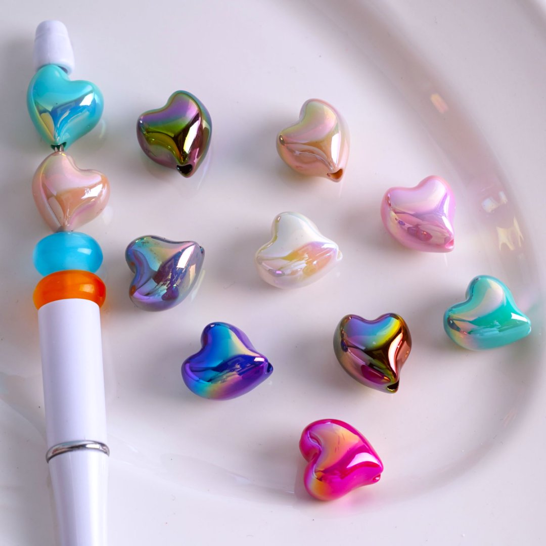 UVコーティング 光沢のあるハート型アクリルビーズ 約15×17mm ランダムミックス