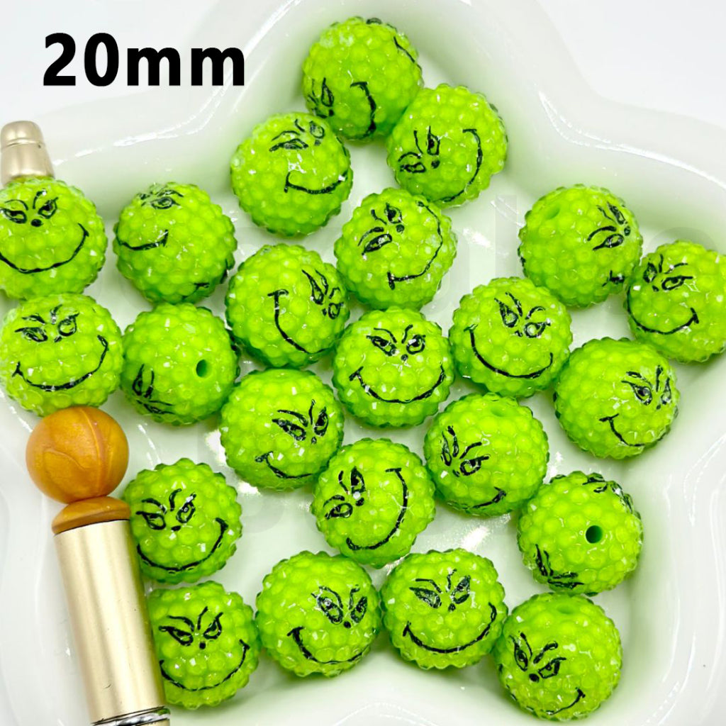 鮮やかなグリーンのモンスターグリンクフェイスクリスマスクリアラインストーンラウンドアクリルビーズ、20MM