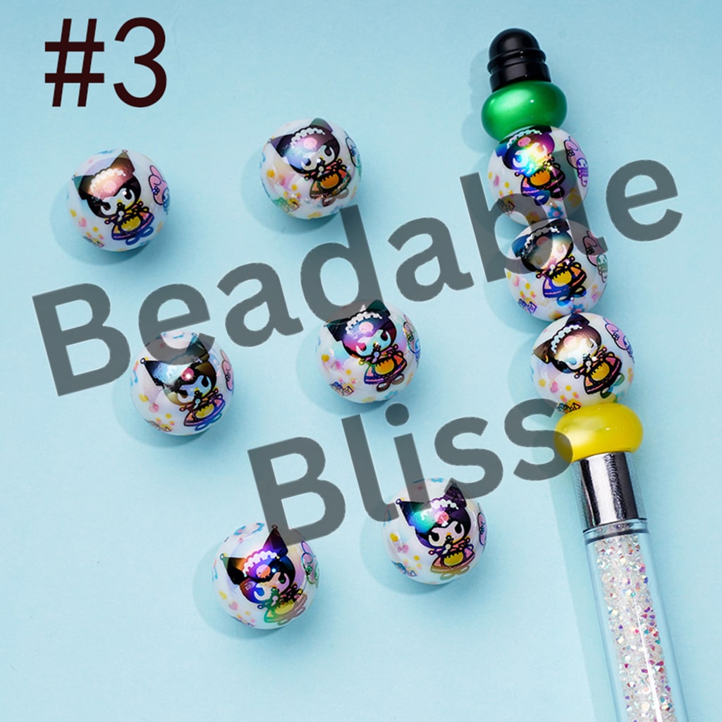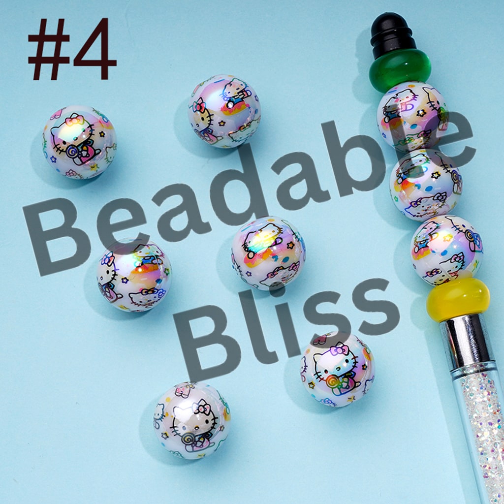 ホワイトUVコーティングアクリルビーズ、クロ、キット、プリント、シナモン、ランダムミックス、16MM