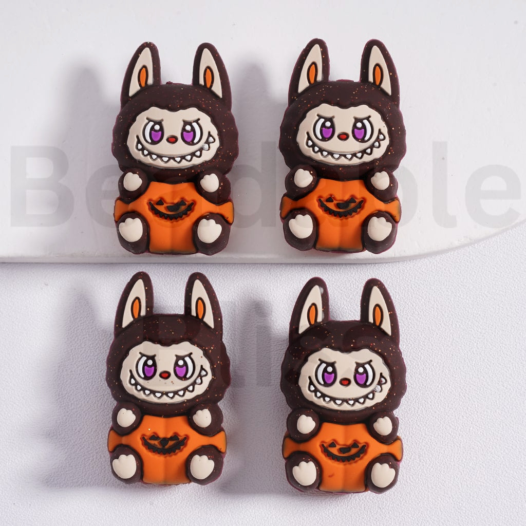 3D Cute Monster Doll Cloud pixie Sits in a Halloween Face Pumpkin Silicone Focal Beads