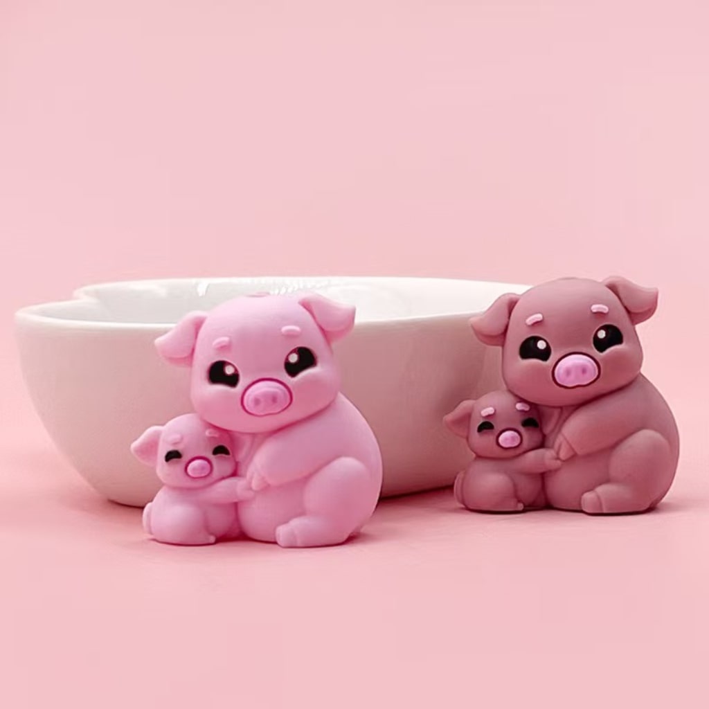 3D Cute Pig Mom Baby MiniSnouter Silicone Focal Beads