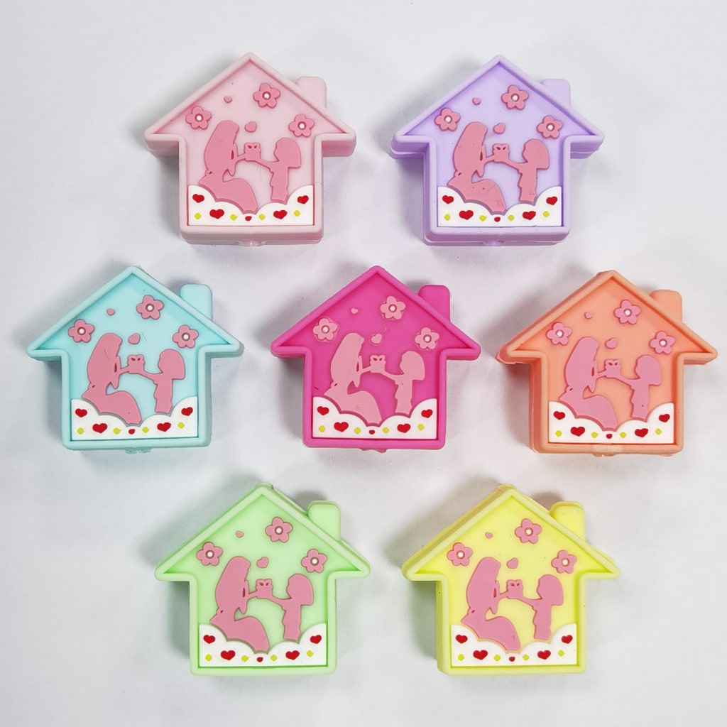 3D Cute Rose Red House Mom Mother's Day Love Silicone Focal Beads, Random Mix