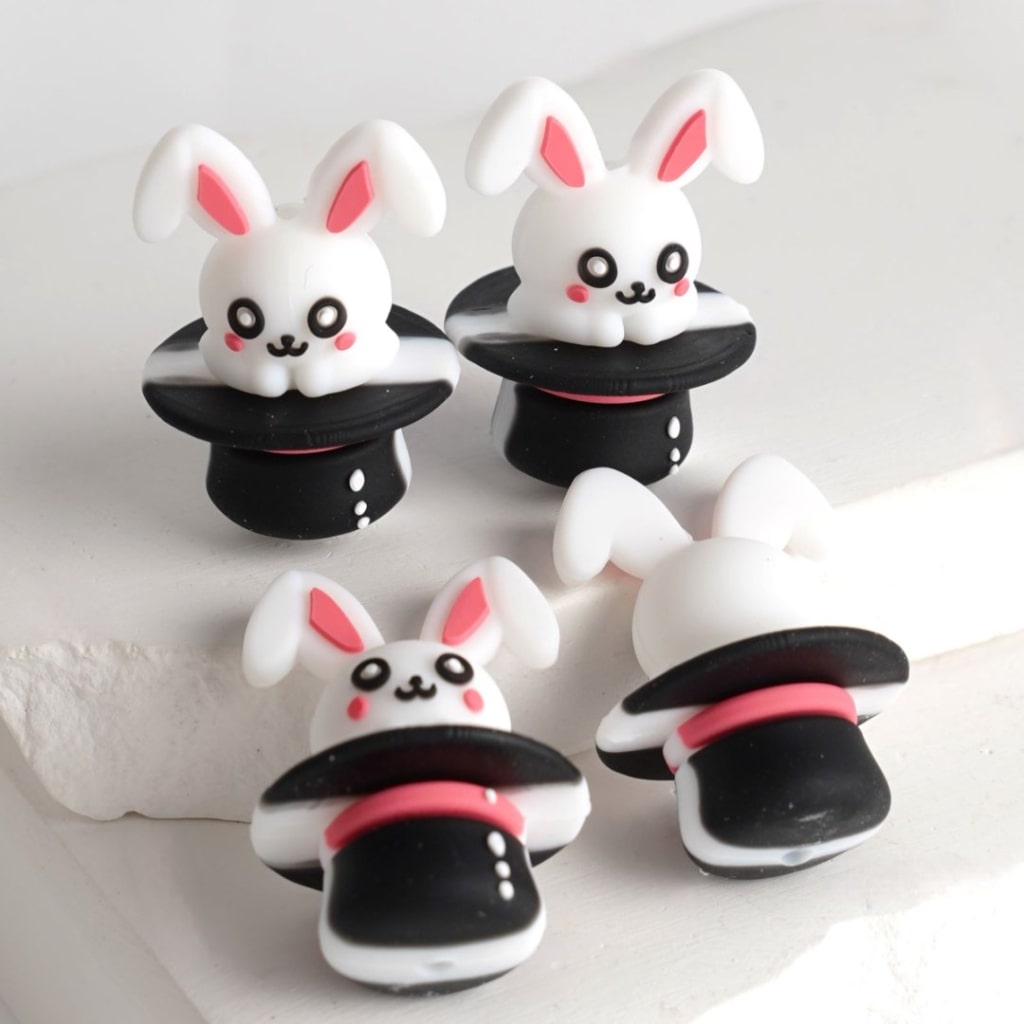 3D Cute White Bunny Rabbit in the Hat Silicone Focal Beads