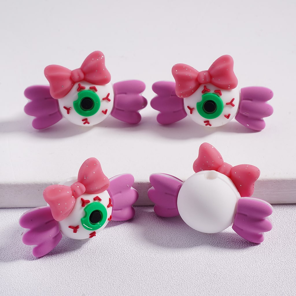3D Halloween Eyes with Pink Bowknot Haunted Edge Silicone Focal Beads