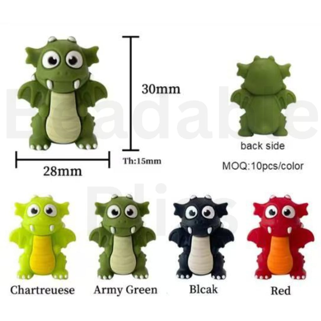 3D Multi-Color Cute Dragons Monsters Silicone Focal Beads