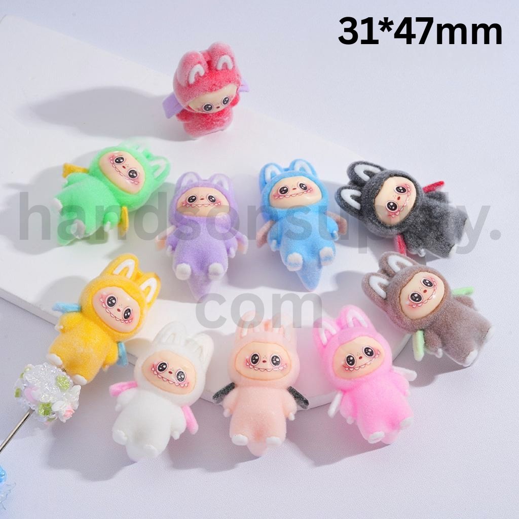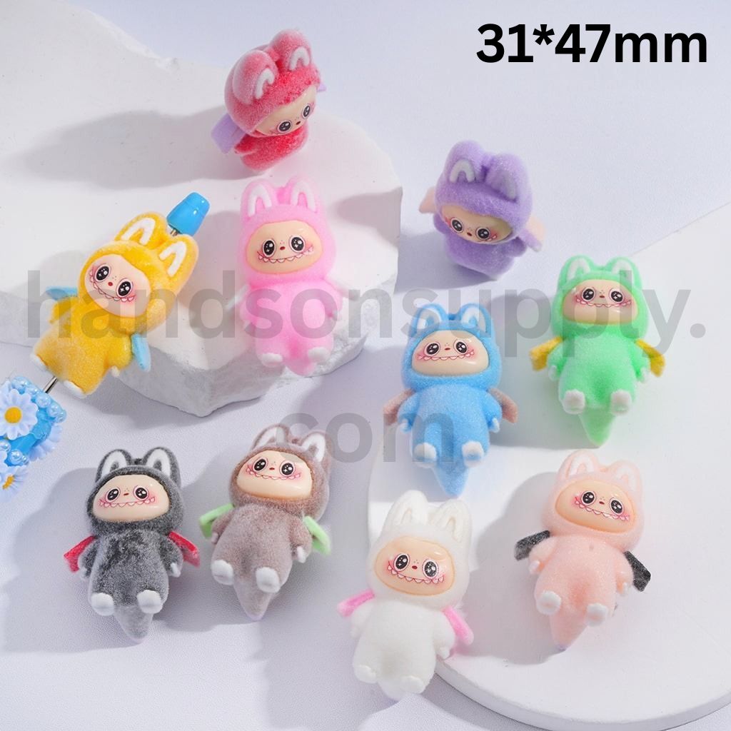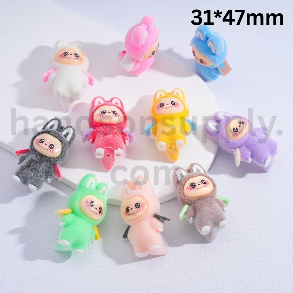 Acrylic Beads Cute Monster Doll Flocked Velvet Spooky with Wings Multi-Color 31*47MM, Random Mix