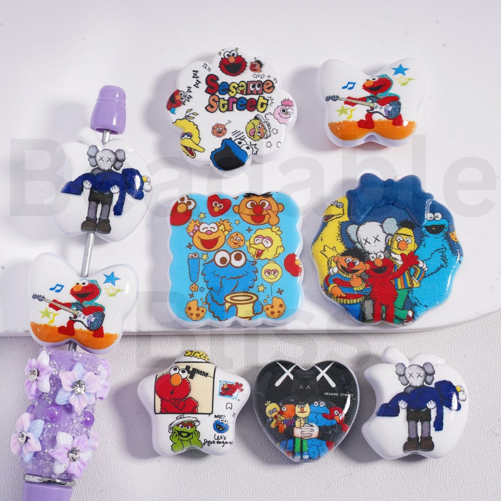 Acrylic Beads Cute Sesam Street Series in Different Shapes, Random Mix