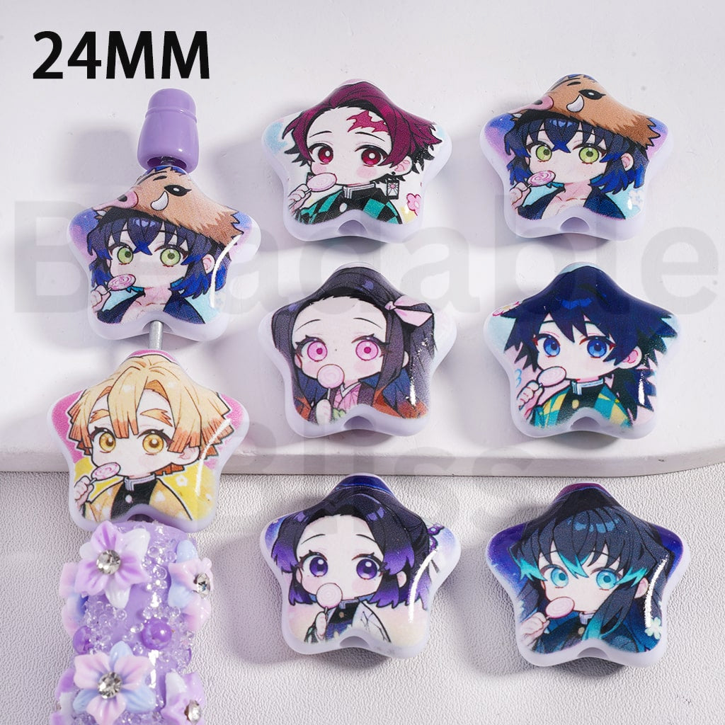 Acrylic Beads Star Shape Cute Demo Slaye Series Japan Anime, 24MM, Random Mix