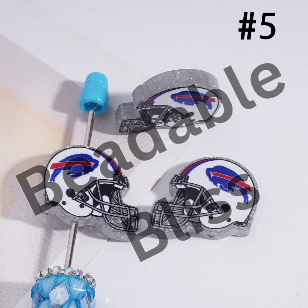 Acrylic Beads USA American Football Team Helmet Series, with Silver Glitter, 22*26MM