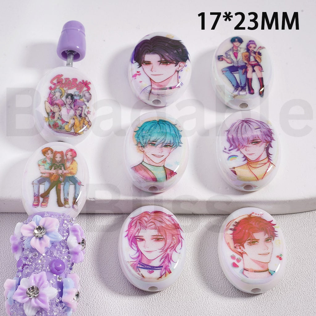 Acrylic Beads UV Coating Boy Group Sa Boys, Flat Oval Shape, 17*23MM, Random Mix