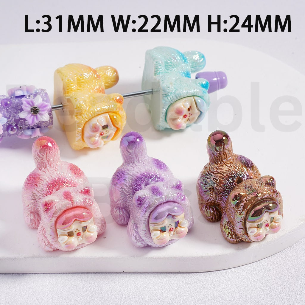 Acrylic Beads UV Coating Cute Cat Skeleton Haunted Cranium Hidden Figure Series 31*22*24MM, Random Mix