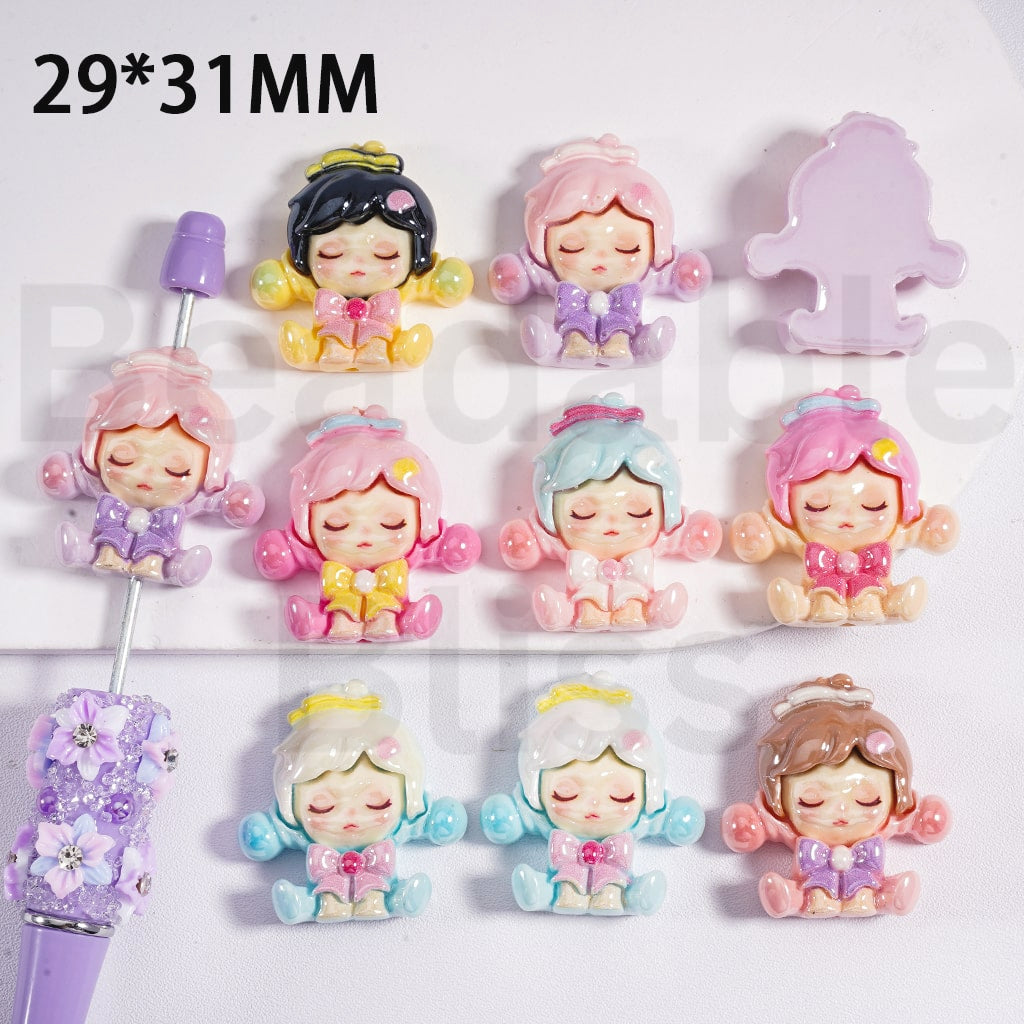 Acrylic Beads UV Coating Cute Girl Bone Shell Skeleton Series Blind Box Haven 29*31MM, Random Mix