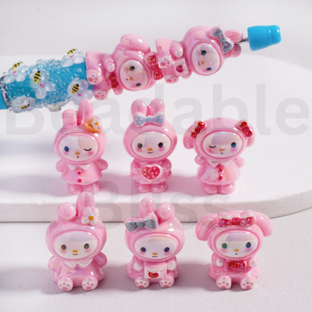 Acrylic Beads UV Coating Cute Pink Sanri My Melod, Random Mix