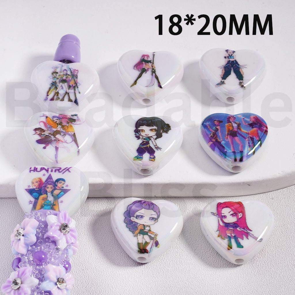 Acrylic Beads UV Coating Girl Group Hunt, Flat Heart Shape, 18*20MM, Random Mix