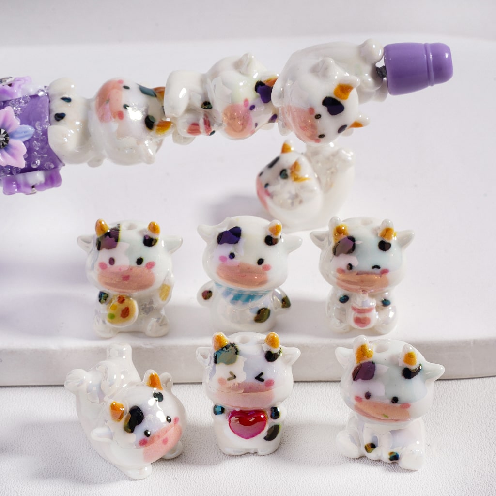 Acrylic Beads UV Coating Little Cute Cow, Random Mix