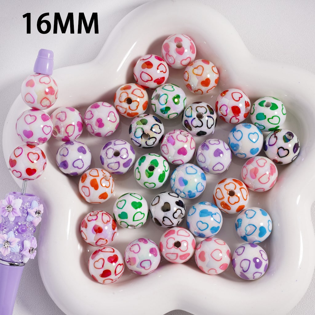 Acrylic Beads UV Coating Valentine's Day Series Mini Multi-Color Hearts, White, 16MM