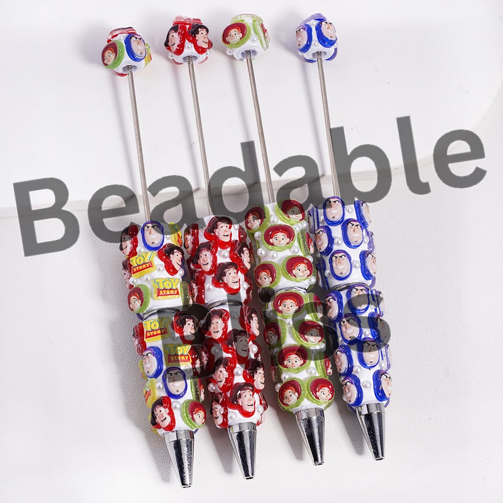Beadable Clay Pen with Cute Toy Characters Series and White Pearls