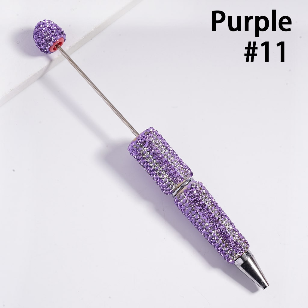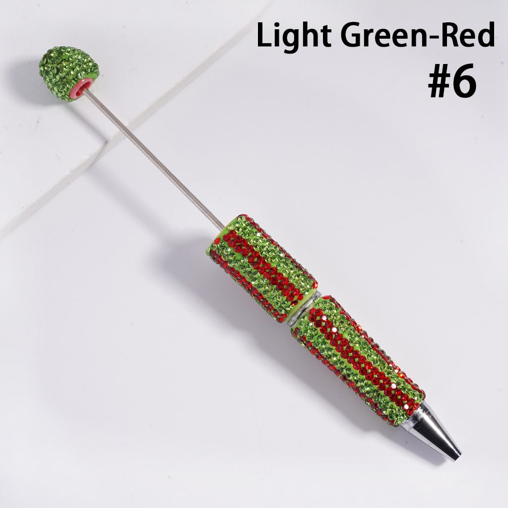 Beadable Clay Pens with Vertical-Stripe Double Color Rhinestones Covered the Entire Pen