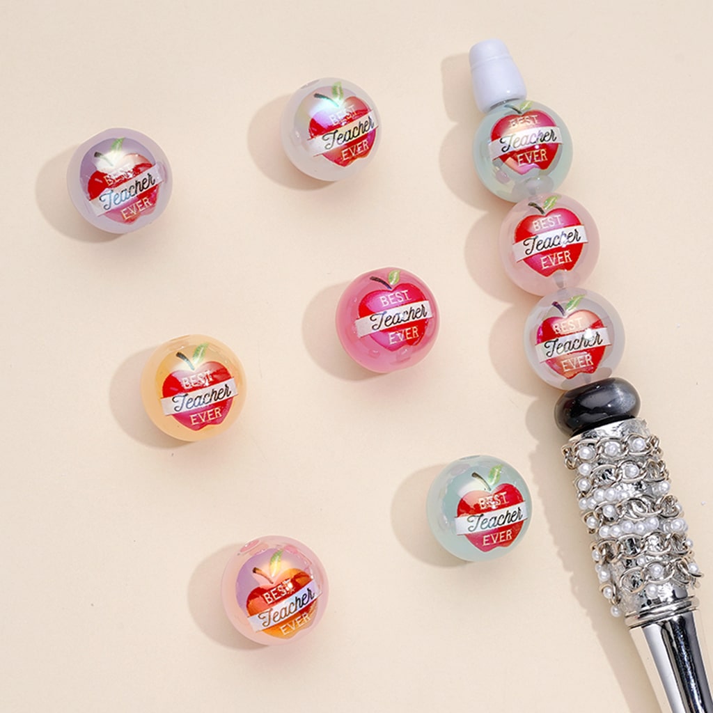 Best Teacher Ever Jelly Color Round Acrylic Beads, Random Mix, 16MM