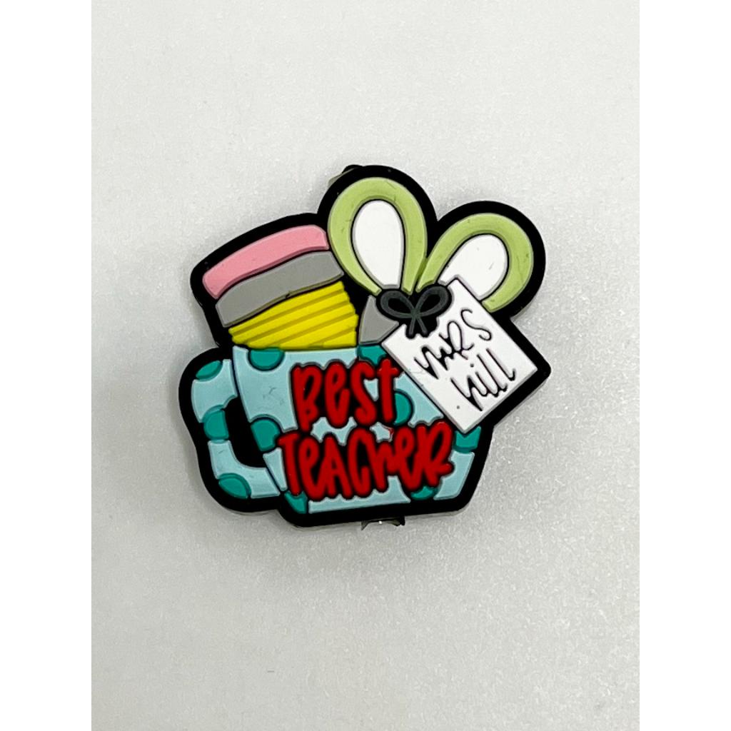 Best Teacher Mr.s Hill Pencil Scissor Cup Silicone Focal Beads