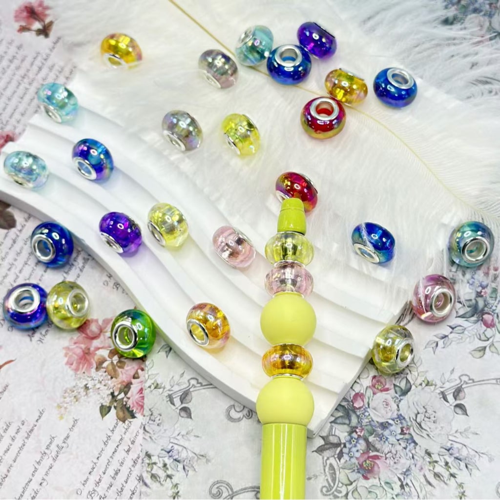 Shiny UV Finish Multi-Color Translucent Wheel Abcaus Acrylic Beads with Large Hole, Random Mix, 14MM