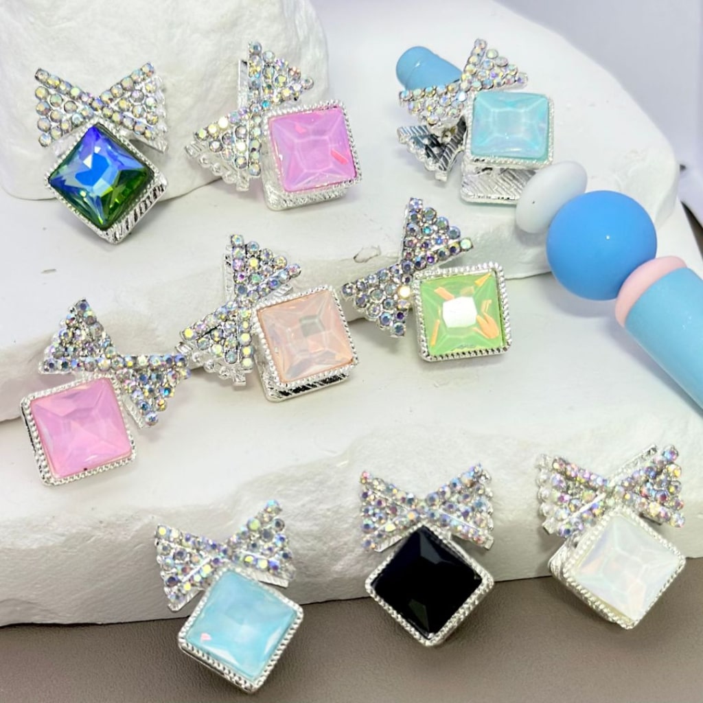 Bling Bling Silver Alloy Bowknot with AB Rhinestones Large Square Diamond Beads, Around 17*23MM, Please Read the Description