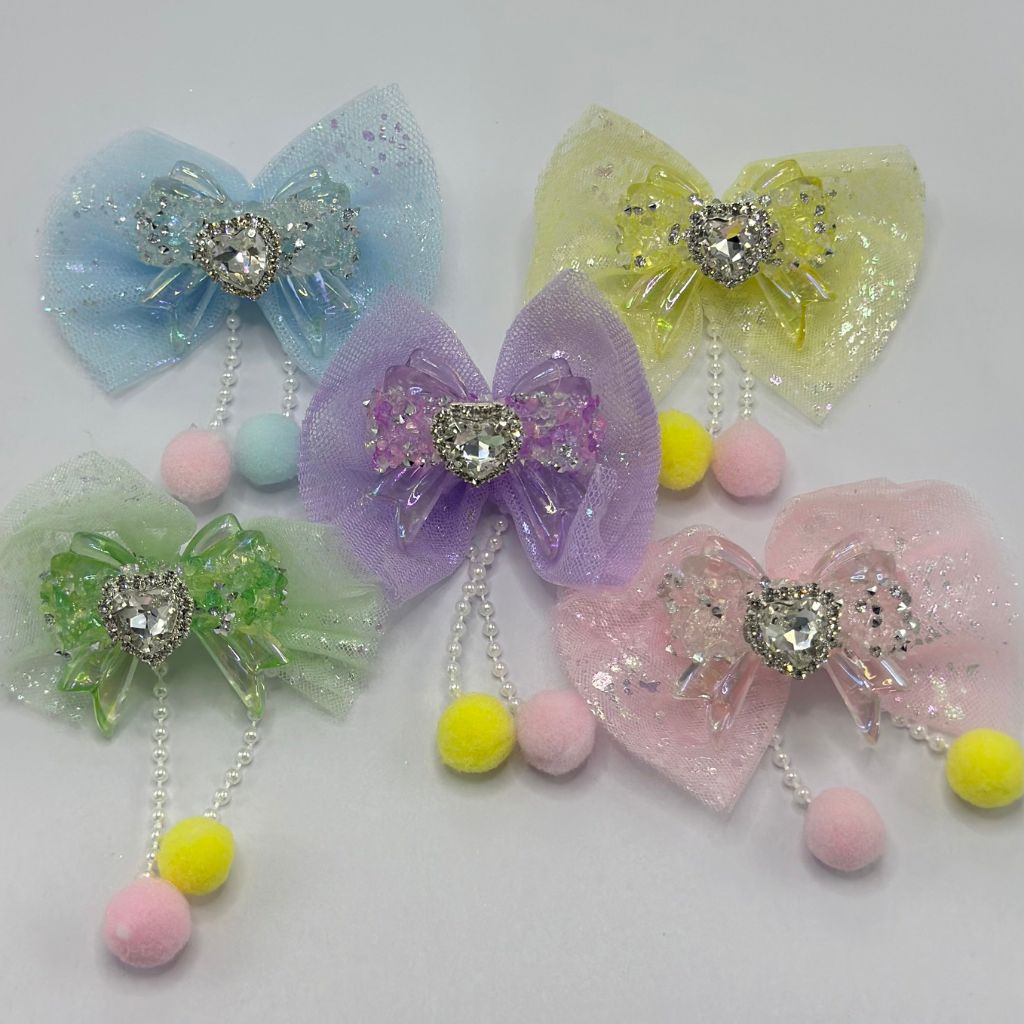 - Bow Beads, Mix of Fancy Acrylic Beads in Bowtie Shape, Ribbon with Pom Pom and Rhinestone Heart: Add sparkle and fun, ideal for special occasions.