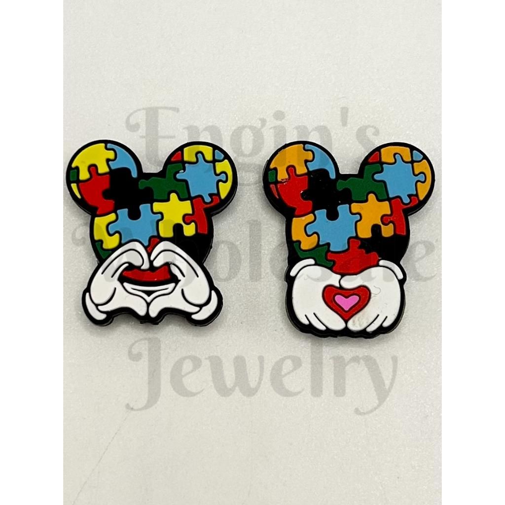 Cartoon Mouse Autism Puzzle Silicone Focal Beads