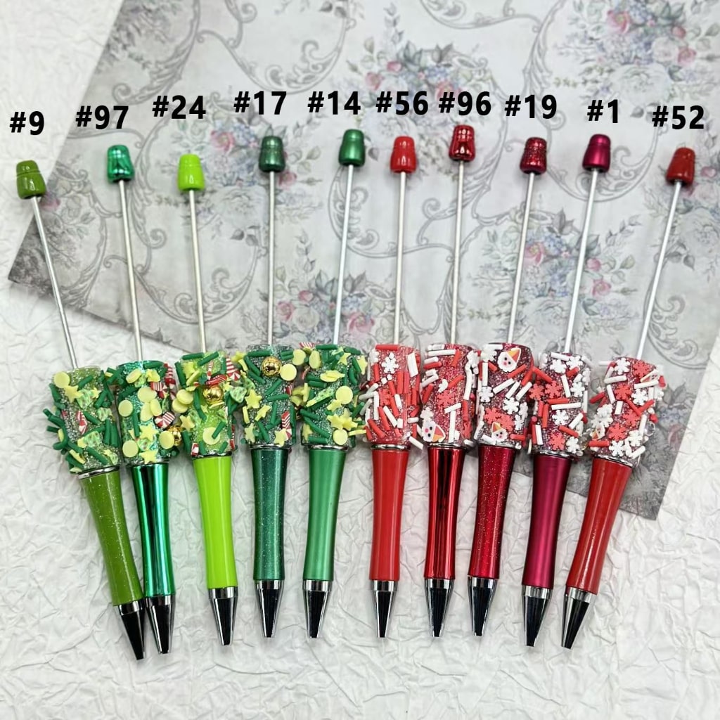 Christmas Red Green Color Beadable Pen with Ornaments Snow Flakes Bells Candy Christmas Trees Snowman |