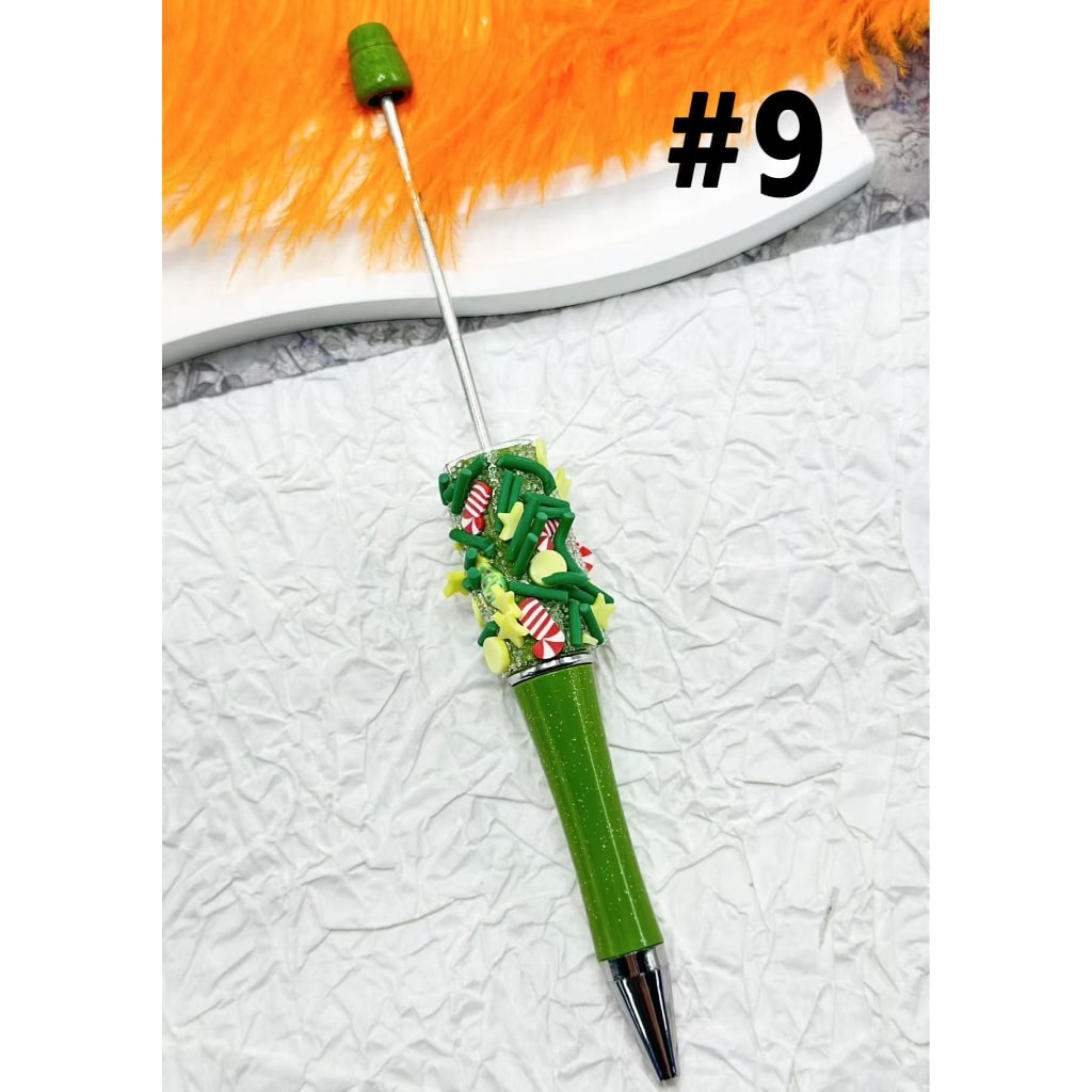 Christmas Red Green Color Beadable Pen with Ornaments Snow Flakes Bells Candy Christmas Trees Snowman