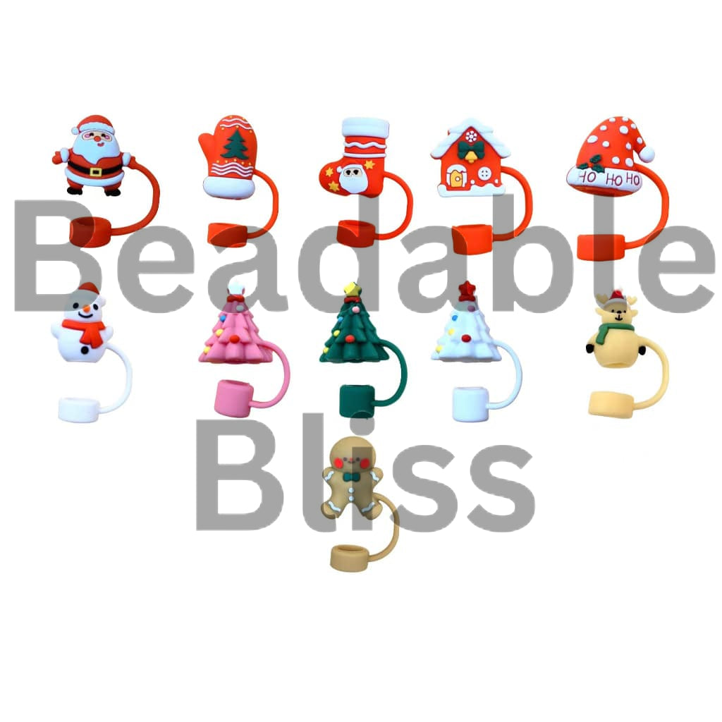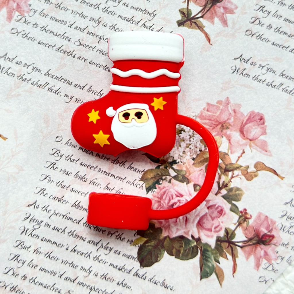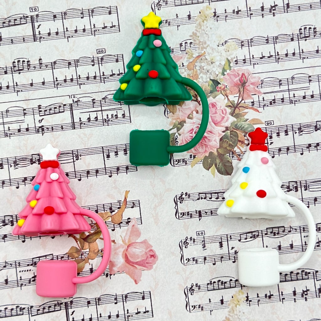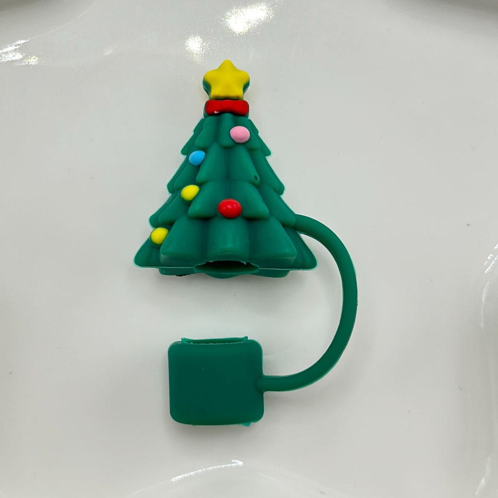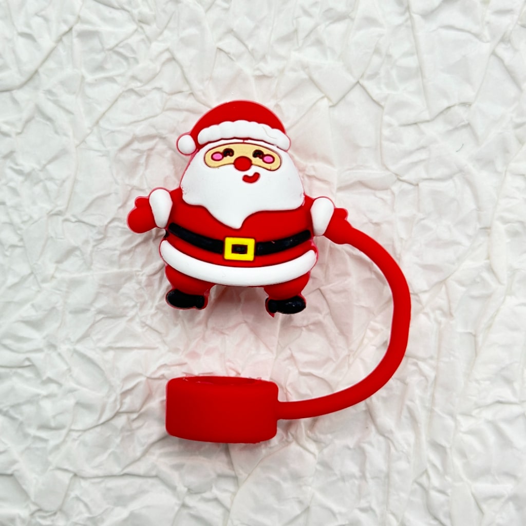 Christmas Theme Food Grade Cup Tumbler Silicone Straw Topper