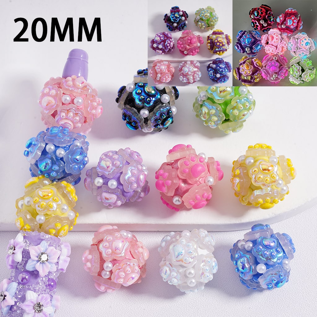 Clay Beads Luminous Color Changing Cute Paw Prints White Pearls in Solid Color 20MM,Random Mix