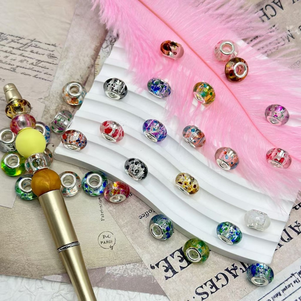 Colorful Art Abstract Painting Graffiti Spots Clear Wheel Abcaus Acrylic Beads with Large Hole, Random Mix, 14MM