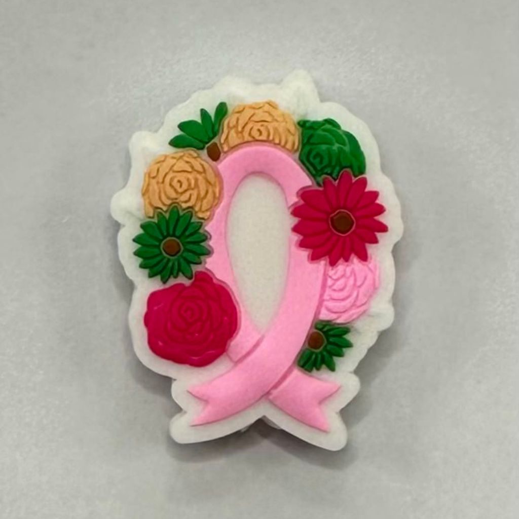 Colorful Wreath Flowers Cancer Awareness Ribbon Silicone Focal Beads