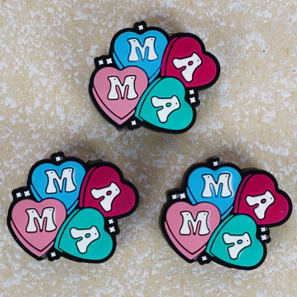 Colorful Hearts Mama Mother's Day Silicone Focal Beads