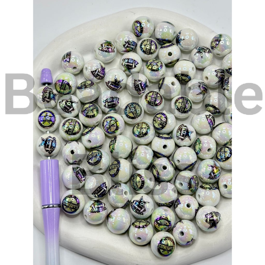 Cowbo Football Team White Round Acrylic Beads, Random Mix, 16MM