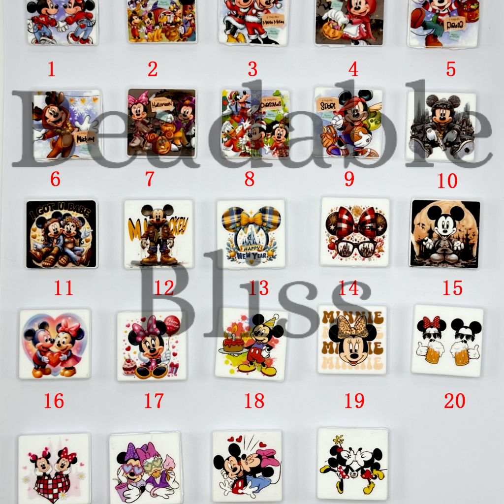 Cube Minny Meckey Cartoon Mouse Silicone Focal Beads, One of Each