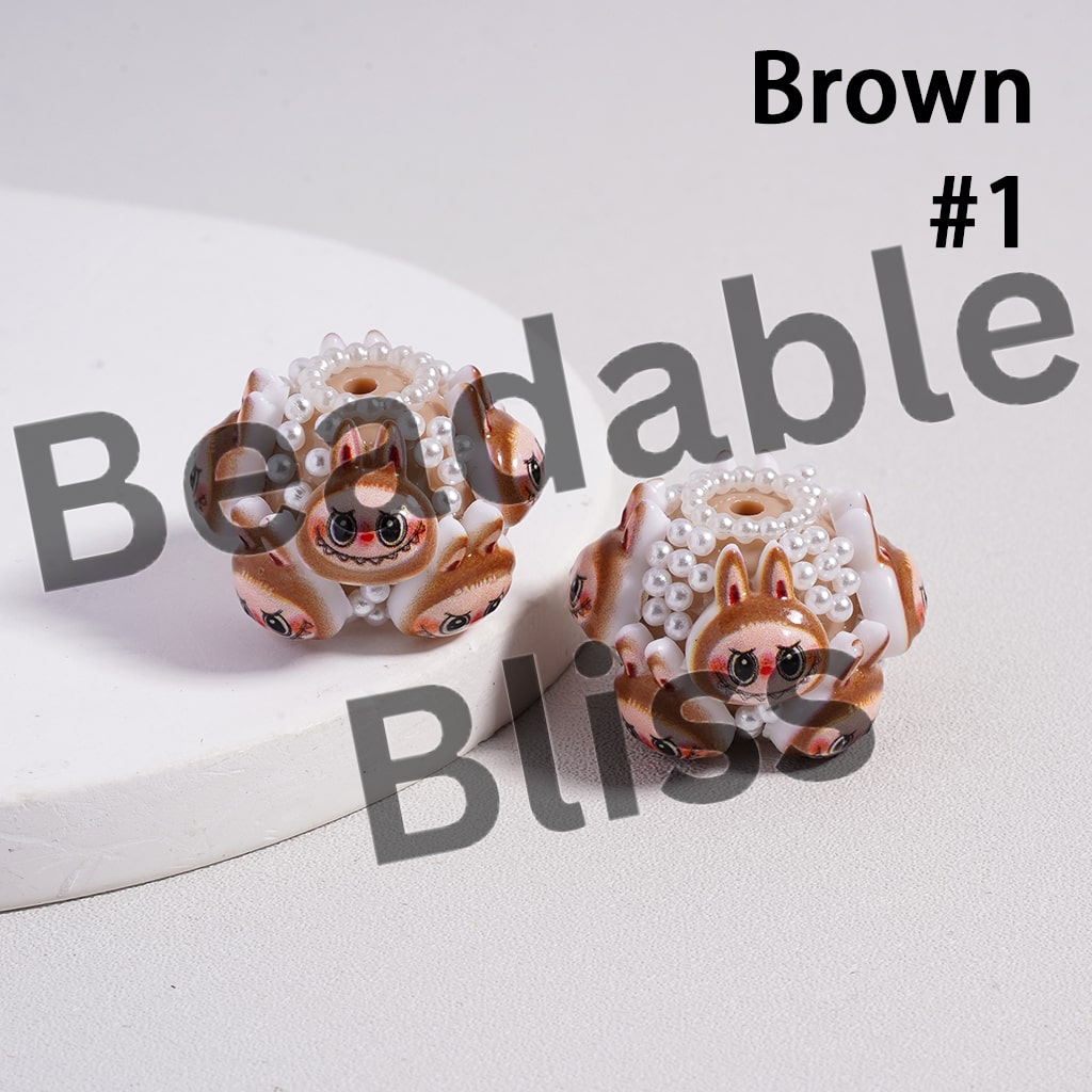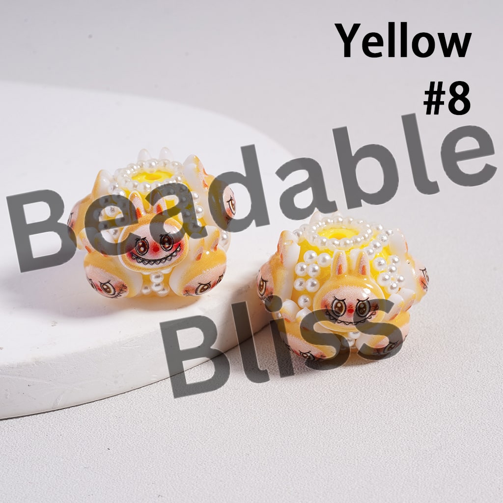 Cute Colorful Creature Monster Doll White Pearls Round Acrylic Beads in Solid Color, Around 20*23MM