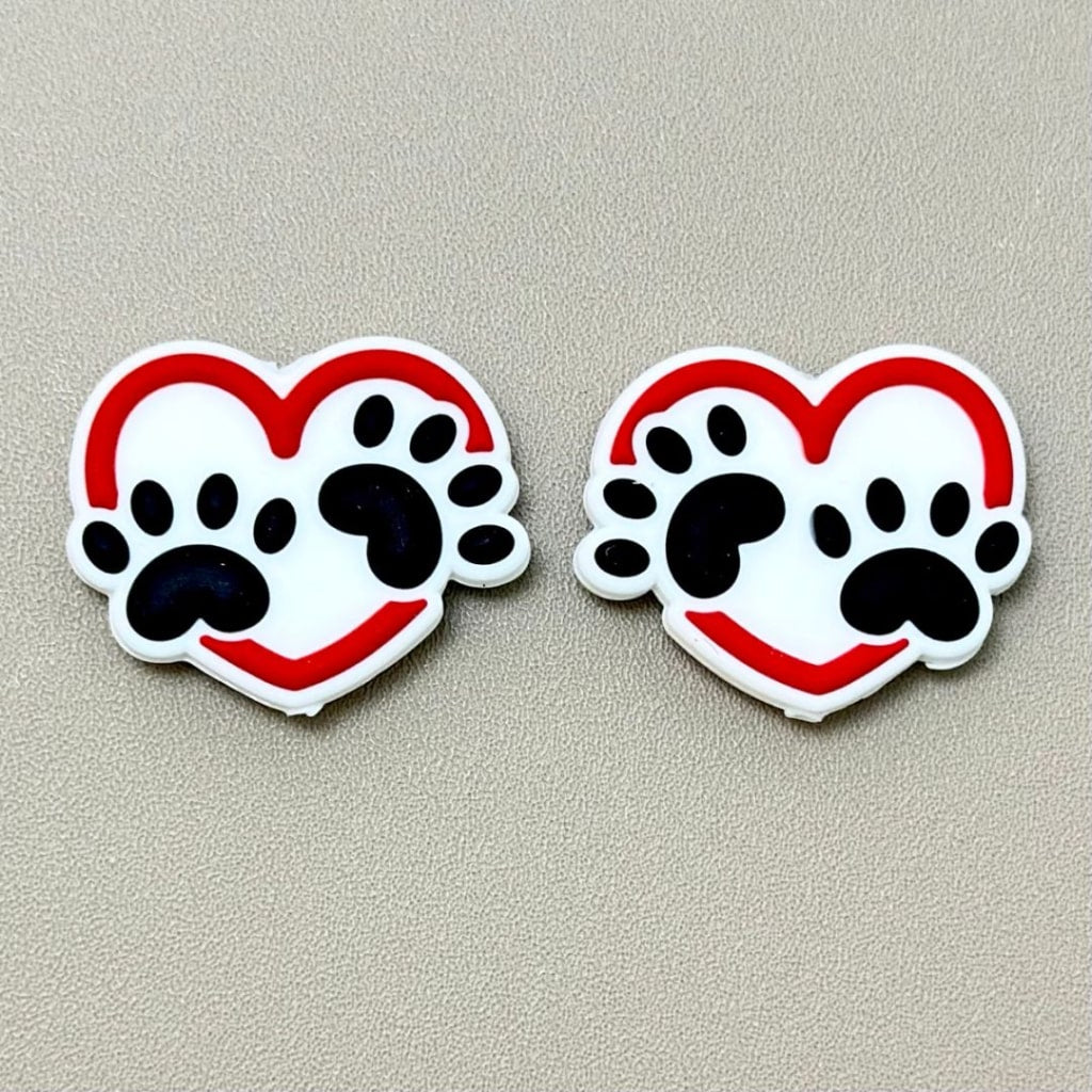 Cute Heart with Paw Prints Love Valentines Silicone Focal Beads