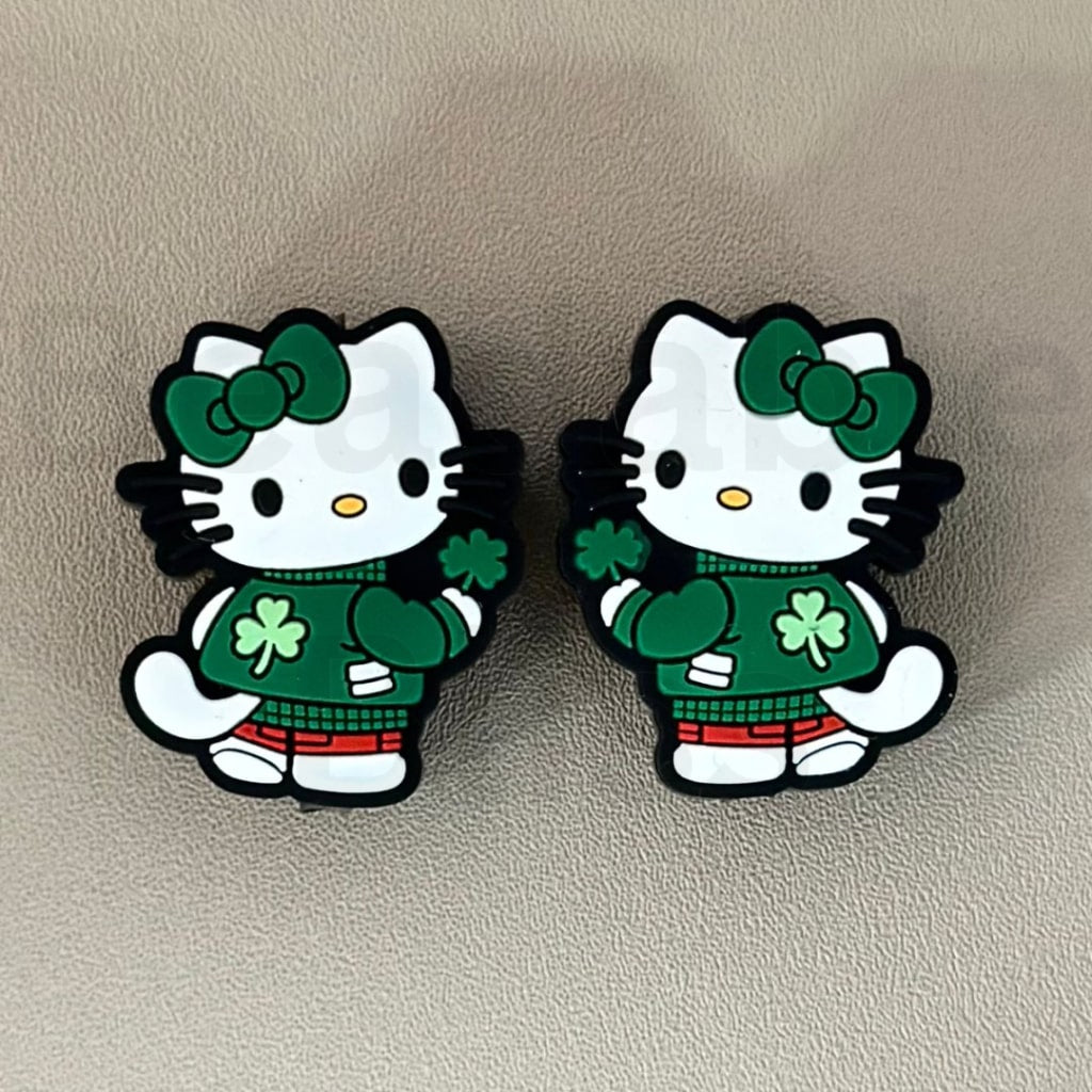 Cute HK Kitten in Green Holds a Clover Saint Patrick's Day Silicone Focal Beads (Ship out in Around 4-6 Days after Ordering)