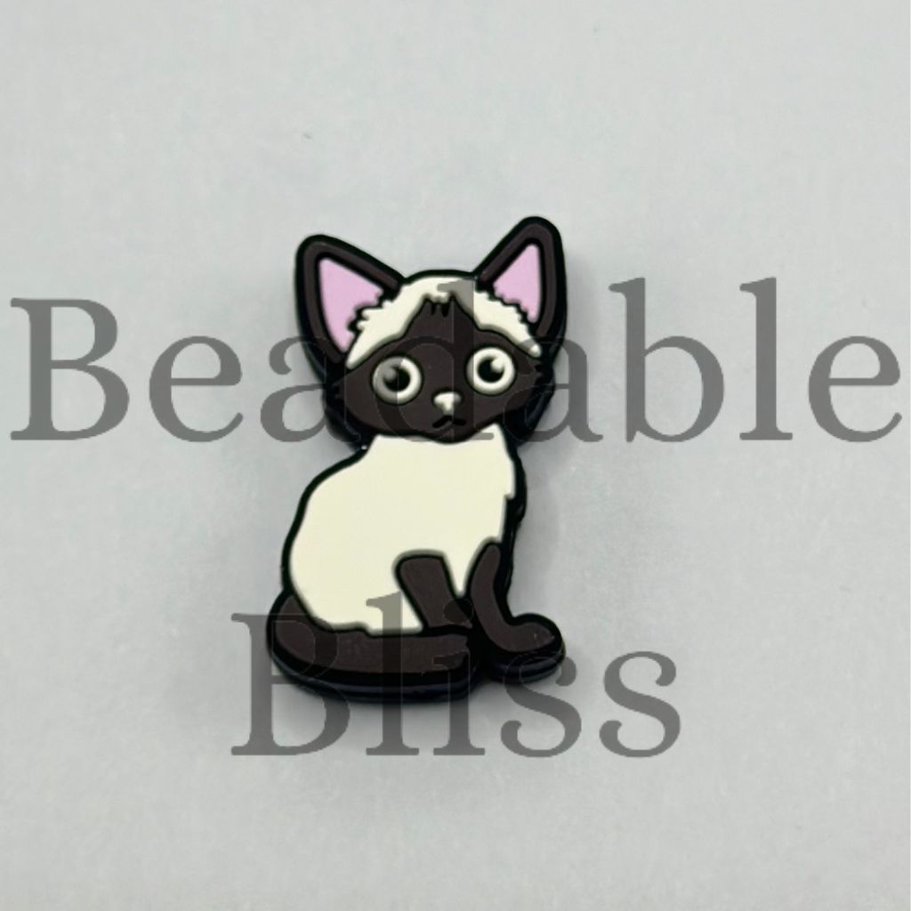 Cute Little Black and White Cat Kitten Silicone Focal Beads